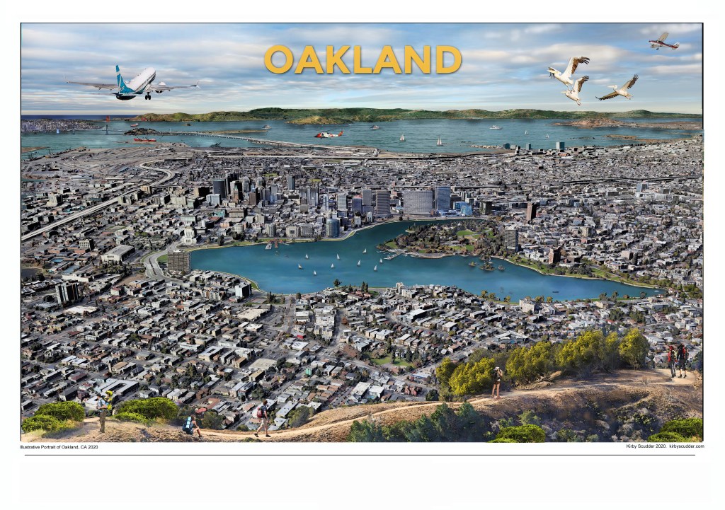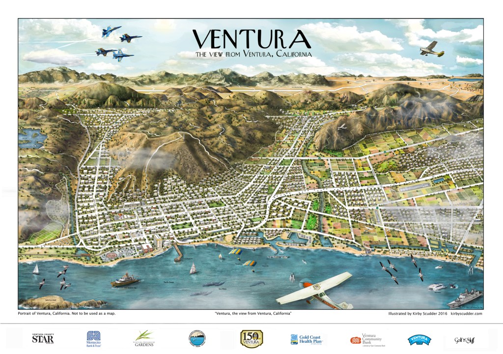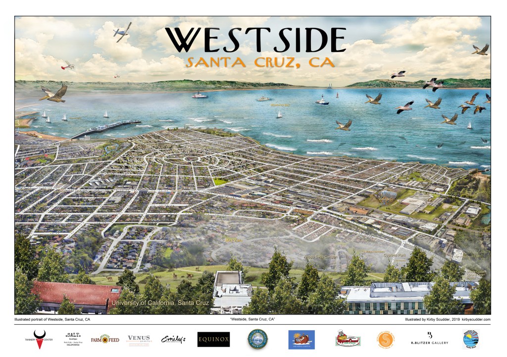 What makes these illustrations unique is the artistic detail and the one point perspective that illustrates a communities relationship to the world. This process highlights the beauty of each communities urban and natural environments. Each print takes months to complete, but the result is a rich portrait of these unique cities and regions of California.
